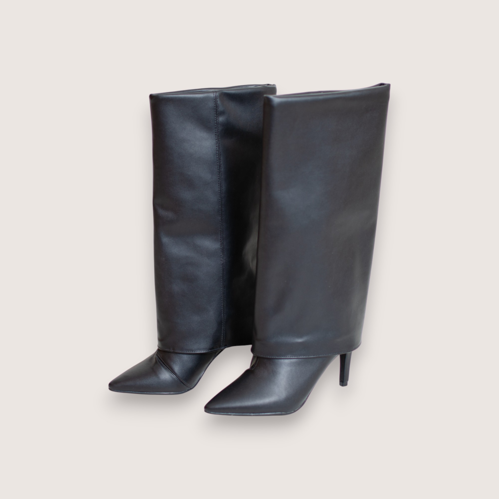 Esta bota polaina é confeccionada em material sintético de alta qualidade, com acabamento liso e toque macio. Seu grande destaque é o cano longo com efeito de polaina, que oferece um visual moderno e estiloso. O modelo possui bico fino e salto alto fino de 8cm.