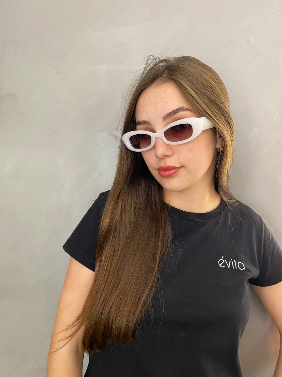 Design moderno e alongado com a armação branca em acetato traz leveza e destaque ao visual, criando um contraste perfeito com a lente marrom degradê, que adiciona charme e suavidade ao olhar. O formato slim e retangular garante uma pegada fashionista e contemporânea, valorizando o rosto e deixando qualquer produção mais estilosa do look casual ao mais sofisticado. Além do visual marcante, o modelo conta com proteção UV 400, bloqueando 100% dos raios UVA e UVB e oferecendo segurança e conforto para os seus olhos.