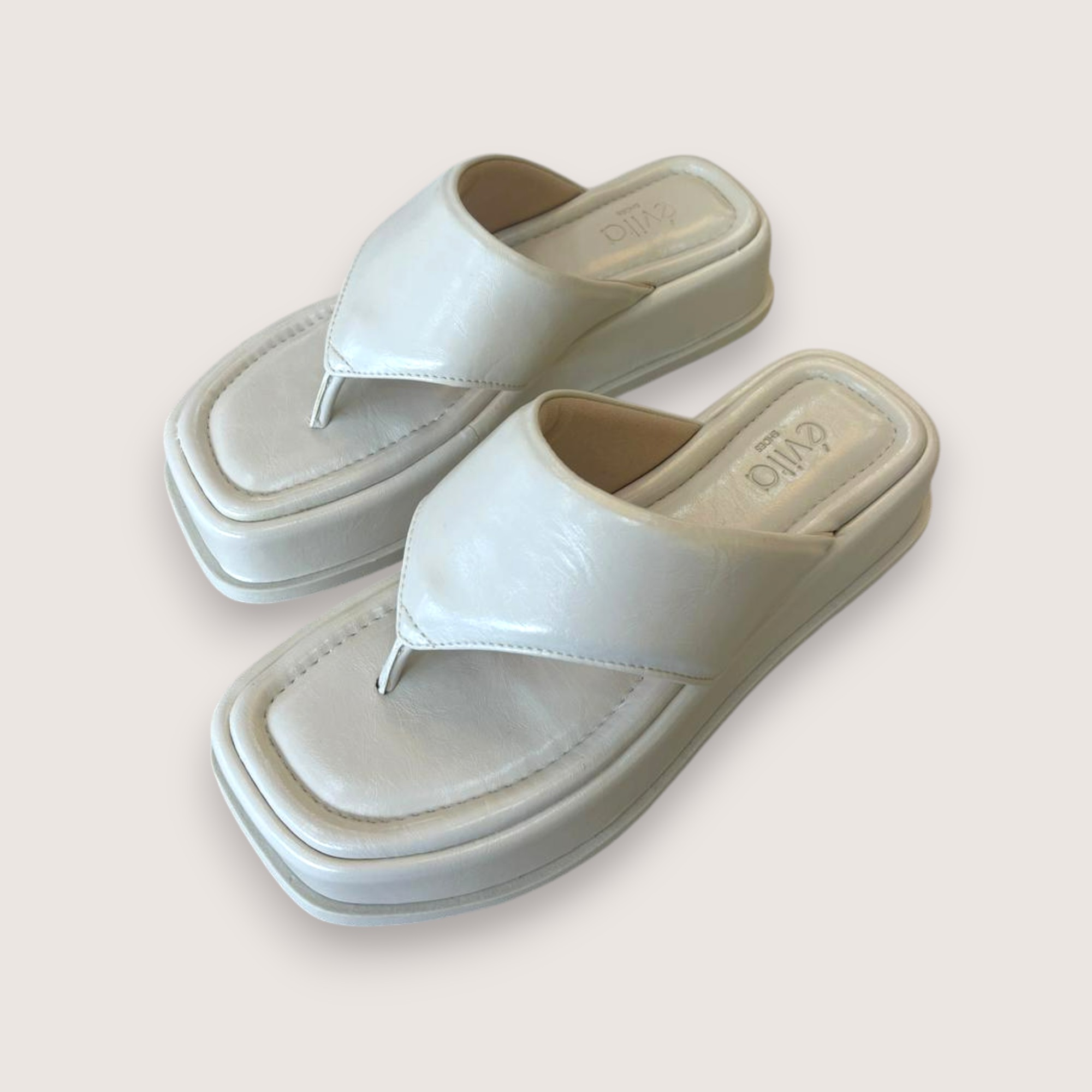 Flatform na cor off white, confeccionada em material sintético, com design moderno e cheio de estilo. O modelo possui cabedal estofado, que garante conforto ao calce e adiciona um visual contemporâneo e sofisticado. O solado flatform de 4cm proporciona estabilidade e praticidade, tornando a peça ideal para compor produções casuais com um toque fashion e atual.