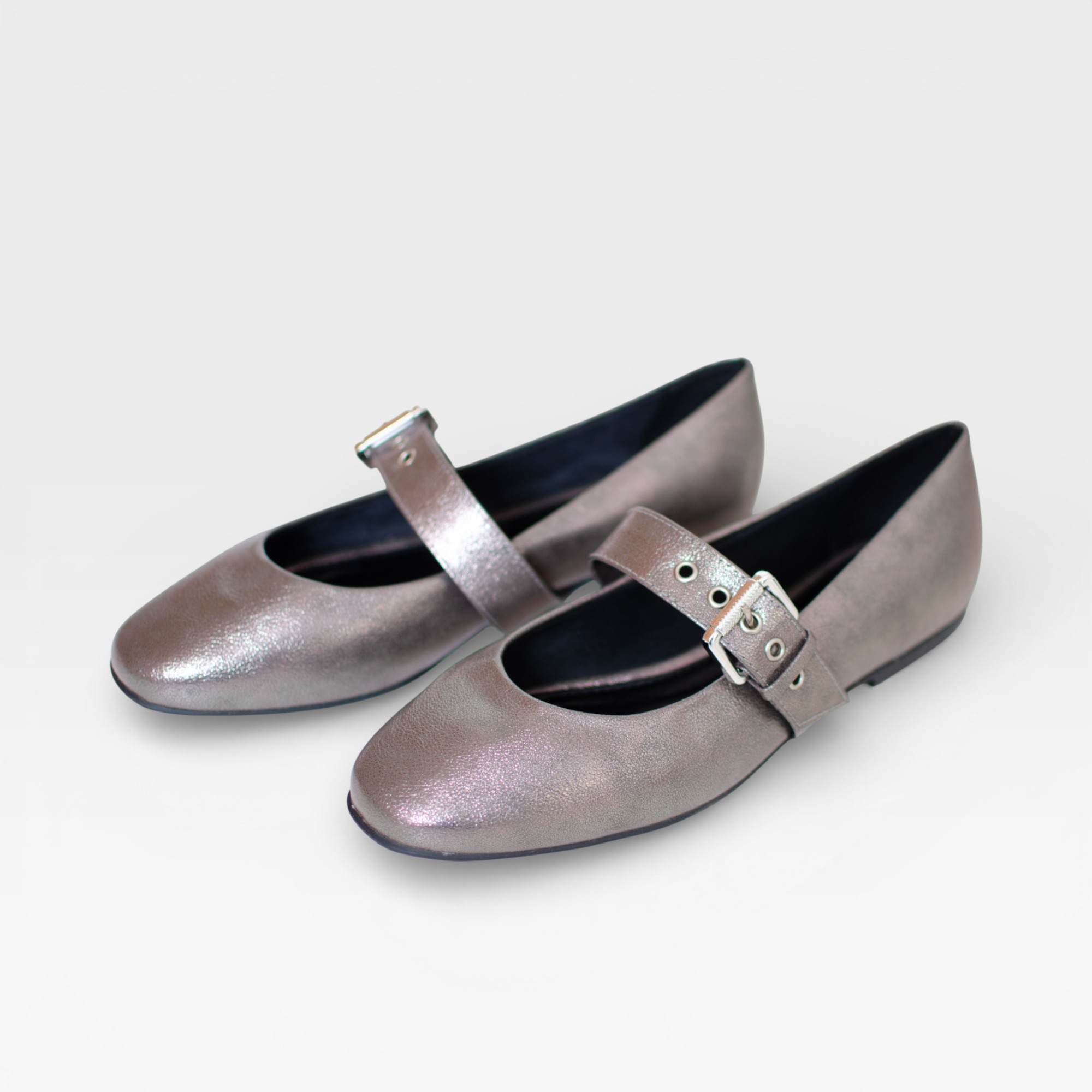 Sapatilha em material sintético, no delicado estilo bailarina, com design moderno e feminino. O modelo possui detalhe sobre o peito do pé, que acrescenta charme e sofisticação, além de bico arredondado, garantindo conforto e um visual clássico. Na cor cinza chumbo, o grande destaque fica por conta dos brilhos holográficos do próprio material, que refletem a luz de forma sutil e elegante, tornando a sapatilha perfeita para compor looks atuais e cheios de personalidade.