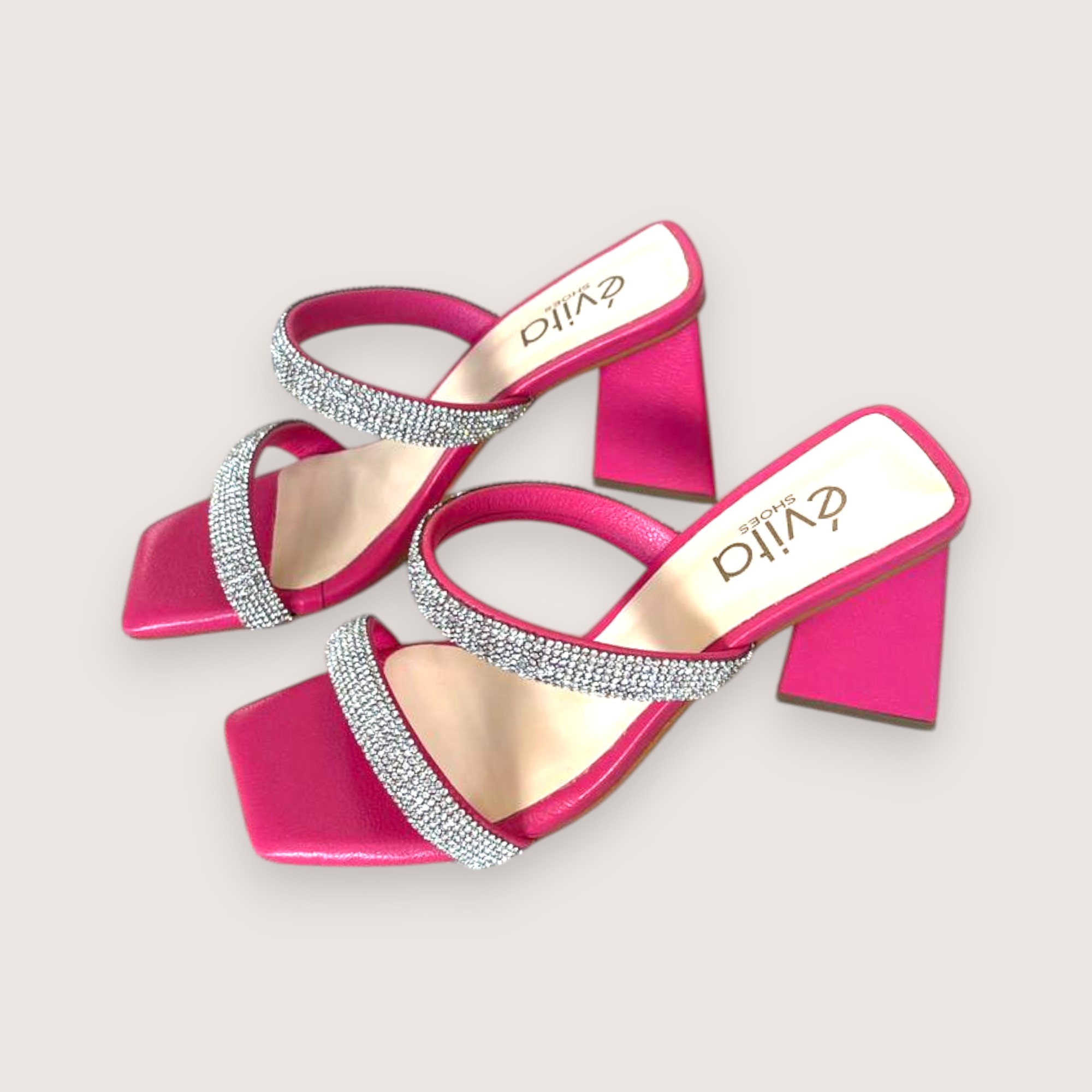 Cheio de personalidade e glamour, este tamanco em couro rosa une estilo e sofisticação em um design marcante. Possui duas tiras cobertas com manta de strass prateado, que adicionam brilho e elegância ao visual, tornando-o perfeito para destacar qualquer look. O salto de 8,5cm em formato triangular garante estabilidade e conforto, além de um toque moderno e diferenciado à peça. Ideal para produções que pedem atitude, charme e muito estilo.