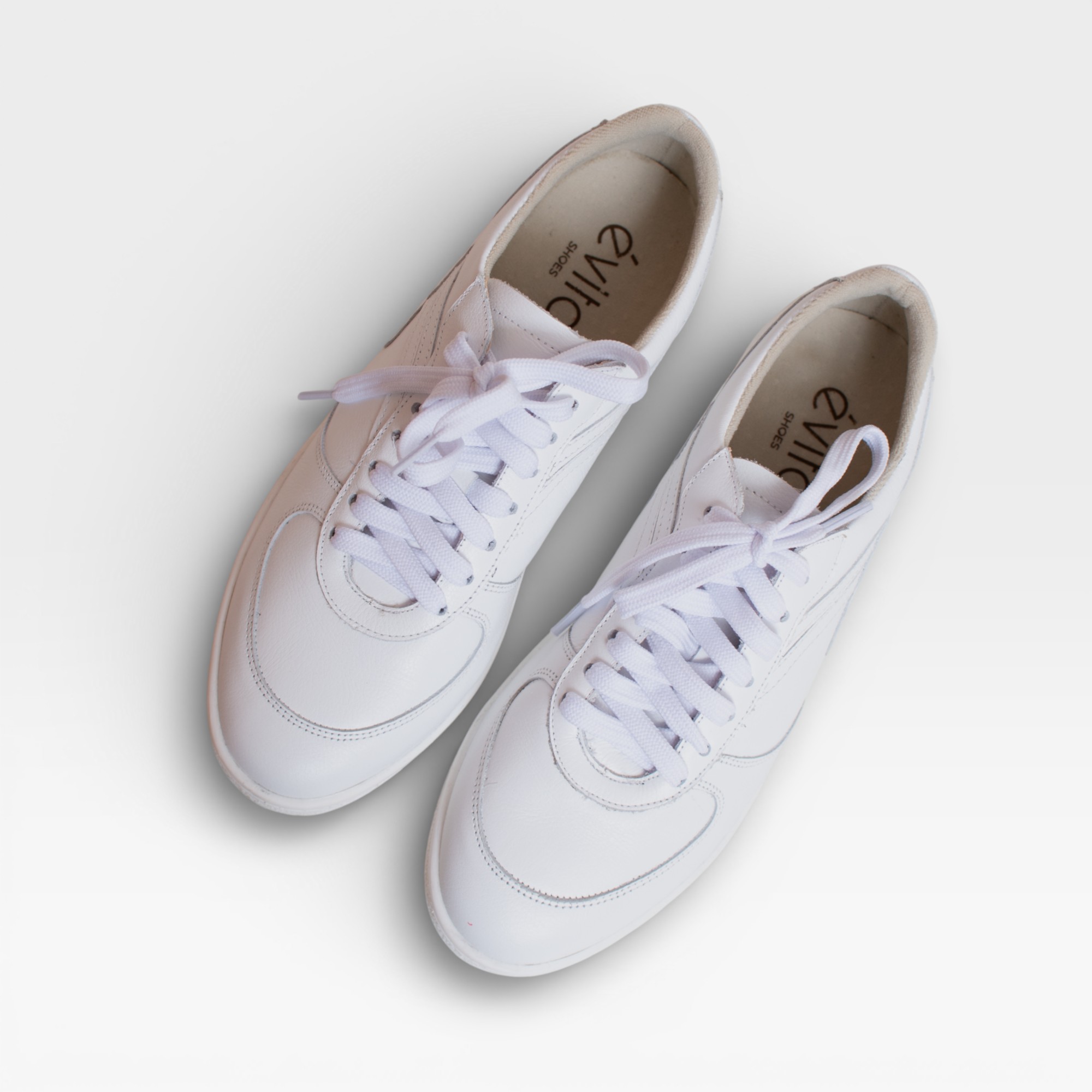 Tênis branco em couro, com visual clean e contemporâneo. O modelo apresenta solado baixo, garantindo leveza e conforto para o uso diário. Os recortes em relevo na própria cor branca adicionam textura e sofisticação ao design, criando um efeito moderno e discreto. O cadarço branco complementa o visual monocromático, tornando o tênis versátil e fácil de combinar com diferentes produções casuais.